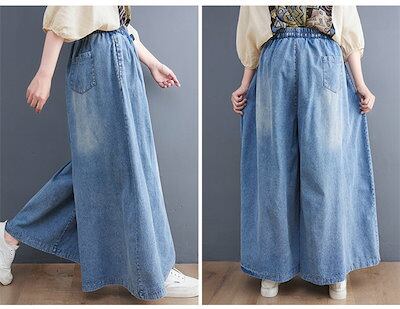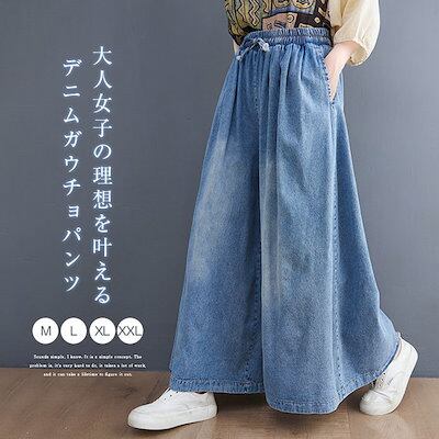 デニムパンツ ワイドパンツ レディース ガウチョパンツ デニム ゆったり ボトムス ジーパン チノパン バギー イージーパンツ 柔らか 森ガール デニム ズボン ウエストゴム 大きいサイズ 体型カバー | coolcoool