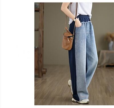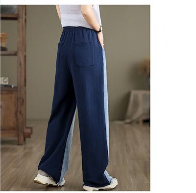 ワイドデニムパンツ 切替 ワイドパンツ レディース スウェット パンツ 春秋 ロングパンツ デニムパンツ ジーンズ ボトムス リラックス ウエストゴム ジーパン バギーパンツ イージーパンツ ゆった | coolcoool