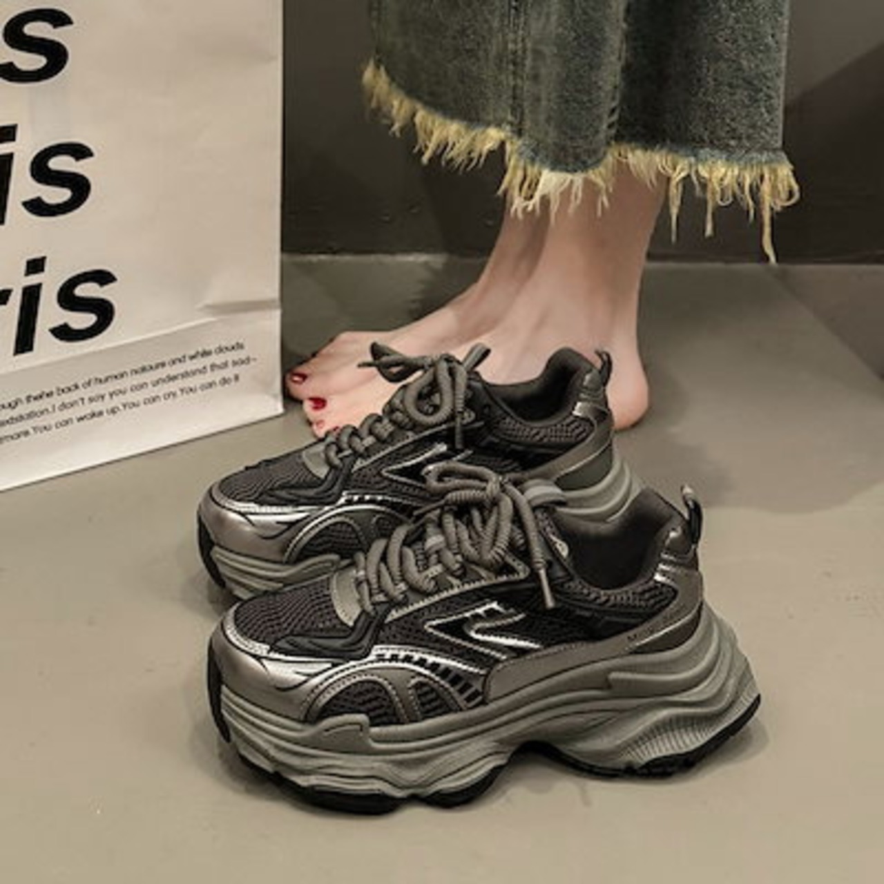 スニーカー レディース カジュアル シューズ 2024 新しい厚底高さ増加軽量スニーカー