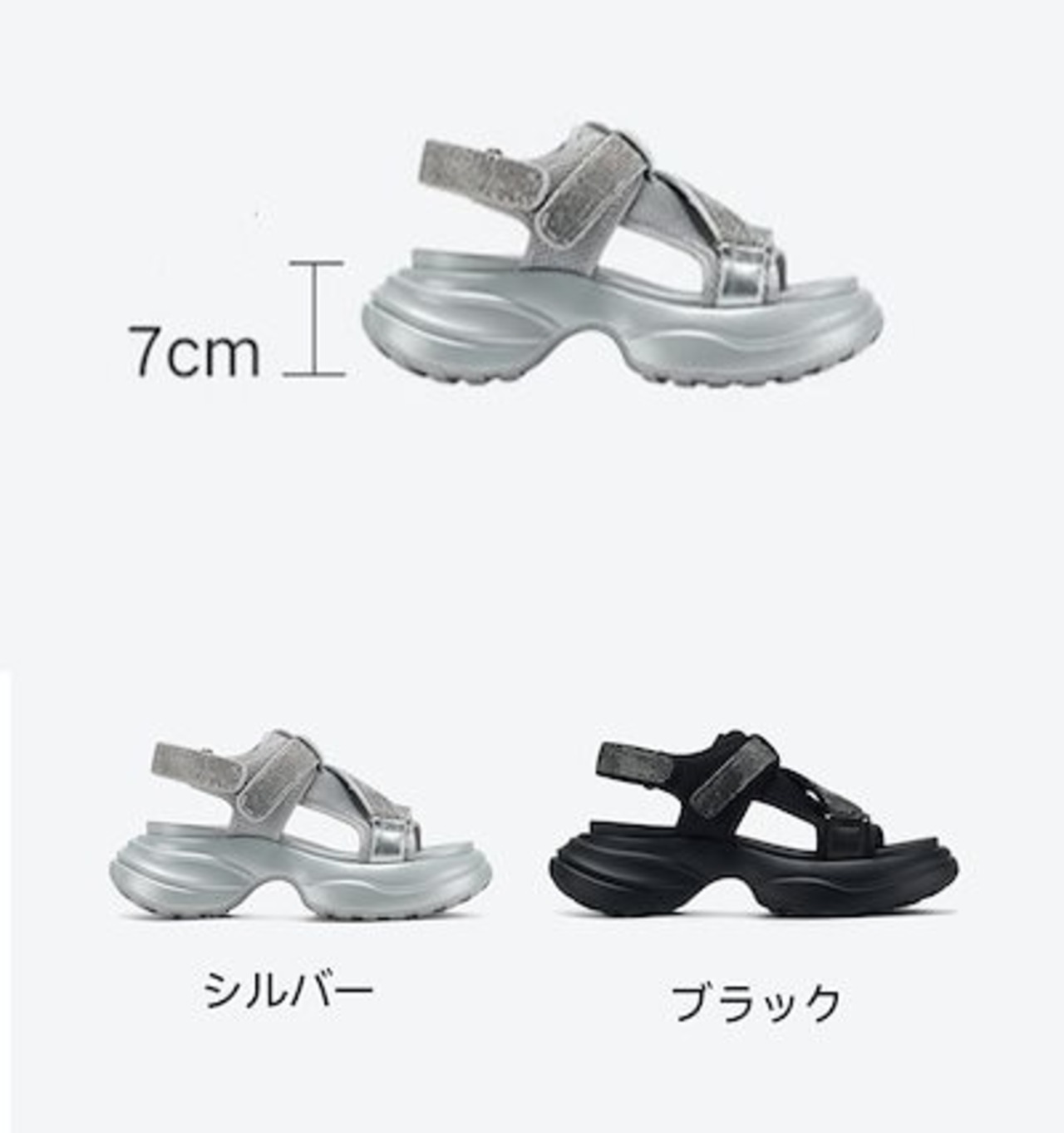 2024新作!厚底サンダル サンダル レディース 韓国ファッション スポサンサンダル 7cmヒール ビジューサンダル きれいめ らくちん ぺたんこ 大人 高見え シルバー ブラック 韓国ファッション | coolcoool