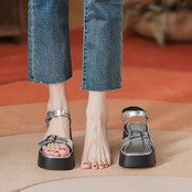 韓国 厚底サンダル レディース 2024年新作フレンチシルバーサンダル夏の太ハイヒール厚底サンダル スポーツサンダル 通気 ビーチ フラットサンダル 春夏 ストラップサンダル