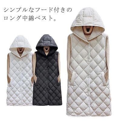 中綿ベスト ロング ダウンベスト レディース 中綿 キルティング ロングベスト フード付き アウター 羽織り 秋冬 軽量 薄手 防寒 保温 あたっか 暖かい ライトダウン インナーダウン ベスト コー | coolcoool