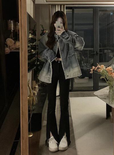 本日の限定商品レトロオールドデニムジャケット 2024年春秋新作 韓国版ルーズ・ジャケット・トップ ジャケット レディース ノーカラージャケット 韓国 ジャケット ロングジャケット 秋服 レディース | coolcoool