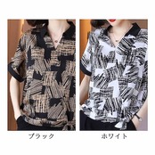 シャツ レディース 総柄スキッパーシャツ Tシャツ 半袖 スポーツ 春 大人 ブラウス ゆったり 襟付き 形態安定 白 トップス オフィス シャツブラウス 事務服 カジュアル おしゃれ かわいい しわ | coolcoool