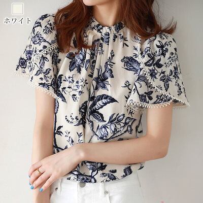 ブラウス レディース 花柄シフォンTシャツ リボン ブランド おしゃれ オフィス 大きいサイズ きれいめ カットソー 高品質 安い 白 夏 シャツ 事務服 涼しい スーツ フリル 半袖 Tシャツ シフ | coolcoool