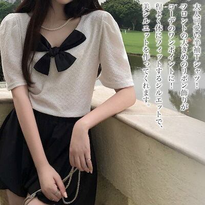 ブラウス レディース BIGリボンTシャツ 春 おしゃれ フォーマル カットソー カジュアル レース オフィス 半袖 白 シャツ リボン 事務服 Tシャツ 涼しい 大きいサイズ フリル 安い 人気 薄 | coolcoool