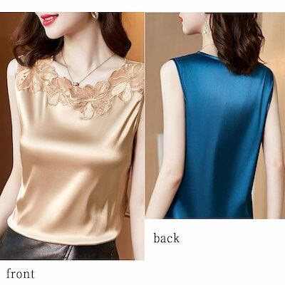 Tシャツ レディース サテンノースリーブブラウス ブラウス 5分袖 春 スポーツ ゆったり ブラック 40代 ロゴ カジュアル 7分袖 薄手 Vネック かわいい ティーシャツ 大人 人気 涼しい シャ | coolcoool