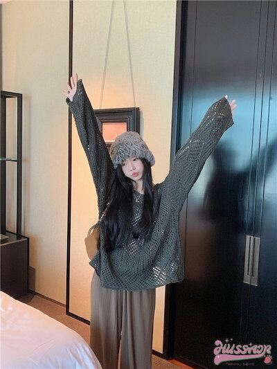 トップス ニット セーター 透かし彫り ラウンドネック プルオーバー ゆったり 丈長め オーバーサイズ 大きめサイズ 秋 ルーズ 肩出し かわいい おしゃれ カジュアル 韓国ファッション レディース | coolcoool