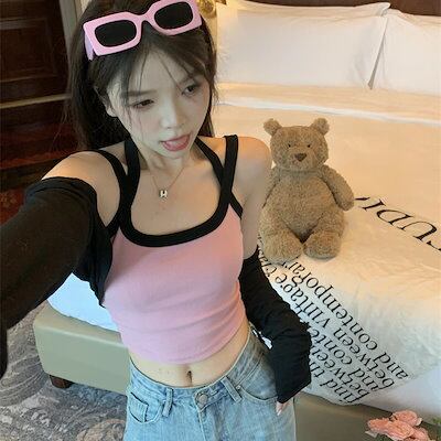人気トップス シンプル タンクトップ 無地 韓国ファッション レディース ショート丈 カップ付きキャミソール
