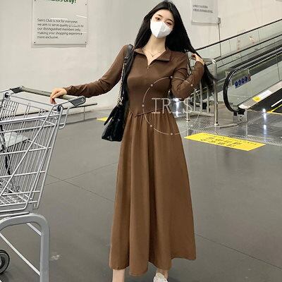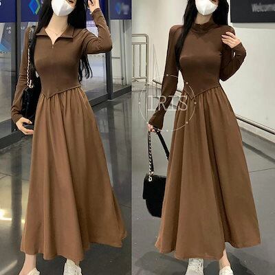 ロングワンピース 春秋 レディース 文化祭 学園祭 衣装 M/L/XL/2XL/3XL/4XL 大きいサイズ 女性 可愛い 長袖ワンピ 無地 ロング丈 ハイウエスト エレガント 着やせ | coolcoool