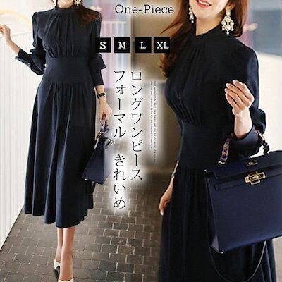 ワンピース レディース 長袖 ネイビー ロングワンピース 春 秋 冬 きれいめ ママ 母 Aライン ハイウエスト ドレス セレモニー 女子会 着痩せ フォーマル ロング丈 マキシ丈 上品 エレガント | coolcoool