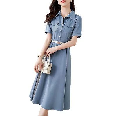 レディースワンピースシャツワンピミモレ丈膝下丈ハイウエストカジュアルシンプル大人可愛いフェミニンおしゃれお出かけデイリー普段着きちんと感バイカラーライトブルーSMLXL2XL大きいサイズ | coolcoool