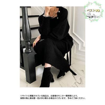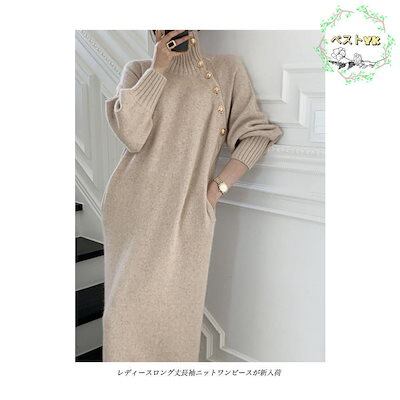 ワンピース ニット 厚手 レディース ニットワンピース 冬 ハイネック 長袖ワンピース 厚手ニット 金属ボタン レトロ ロングワンピ 春 秋 ハイウエスト