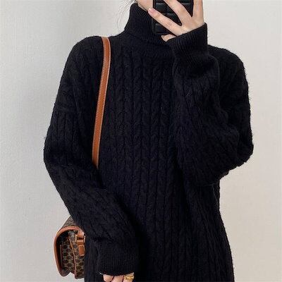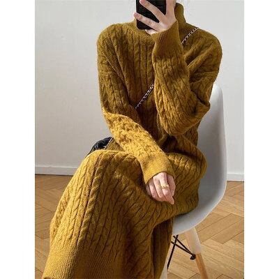 タートルネック ニット ワンピース レディース ロング 秋 冬 春 リブニット 無地 ニットワンピース 秋冬 長袖 ロングワンピース きれいめ ハイウエスト ニットワンピー aラインワンピー aライ | coolcoool