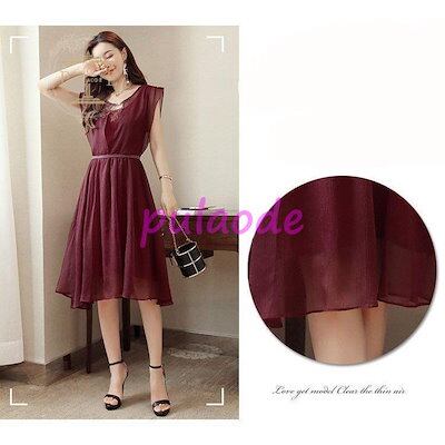 『目玉新商品』ワンピース レディース きれいめ 40代 夏 膝丈 ノースリーブ 無地 フレア シフォンワンピース ハイウエスト ドレス 韓国風 オシャレ 通勤 大人 OL 上品 着痩せ | coolcoool