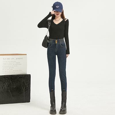 秋の新作 ストレッチスリムスリムスリム 脚見せジーンズレディースブルーグレー百合タイツ 脚長効果!スキニーデニムパンツ ダメージ ロングパンツ レディース ワイドパンツ