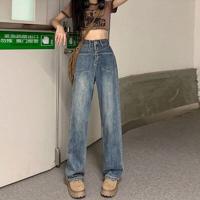 2024春夏 新作 おしゃれ ハイウエスト 着痩せ 気質 ゆったり レトロ デニムパンツ モップパンツ ワイドパンツ脚長効果!スキニーパンツ ワイドパンツ スラックスパンツ デニムパンツ | coolcoool