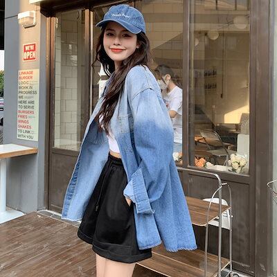 グラーデション デニム シャツ アウター レディース 春 新作 気質 シャツ ゆったり 流行り 洒落たシャツ