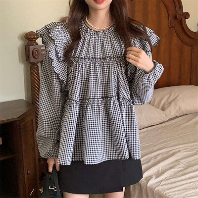 シャツ ブラウス レディース トップス 肩フリル 無地 長袖 春 秋 冬 上品 華やか 体型カバー 高見え 二の腕カバー フリル ティアード フリルネック 立ち襟 ギャザー ゆったり フェミニン ぽっ | coolcoool