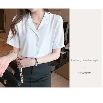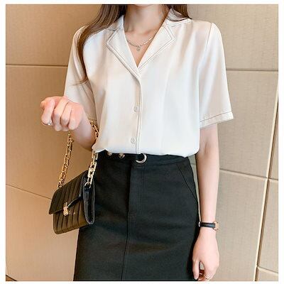 ブラウス レディース 40代 春夏新作 オシャレブラウス 白シフォンシャツ 半袖トップス 折り襟 ブラウス 大人 通勤 ゆったり シャツ 韓国風 30代 50代