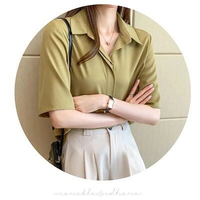 ブラウス レディース 40代 春夏新作 オシャレブラウス 白シフォンシャツ 五分袖トップス 折り襟 ブブラウス上品 大人 通勤OL ゆったりシャツ 30代 50代