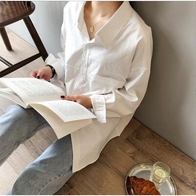 シャツ レディース 白シャツ ガーゼ ブラウス 長袖 オシャレ 柔らか シンプル 折り襟 春 夏 オフィス トップス 無地 可愛い 通勤 通学 ゆったり