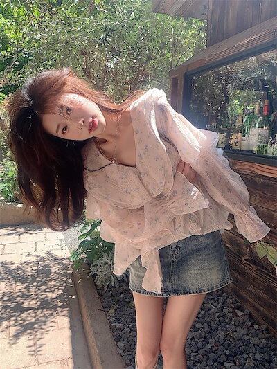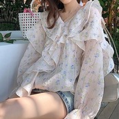 トップス シャツ ブラウス 長袖 ポエットスリーブ Vネックオフィスシフォンシャツレディース長袖ルーズ 襟 花柄 フリル 白 かわいい おしゃれ 夏 韓国ファッション レディース | coolcoool