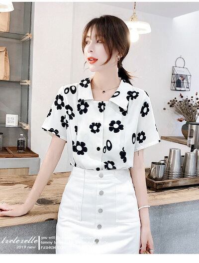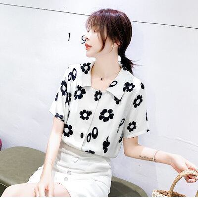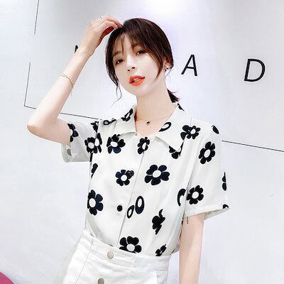 ブラウス レディース きれいめ 春 夏 上品 レース 花柄 ブラウス ポロ襟 シャツ トップス 五分袖 オシャレ 韓国風 大人 Tシャツ 30代 40代 50代