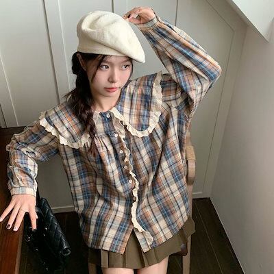 シャツ ブラウス レディース トップスUVカットラブリータートルネックレイヤードトップスンチレトロなベルベットの角襟ショート丈長袖シャツ春と秋の新デザイン感優しい風トップス女今っぽシアーシャツ | coolcoool