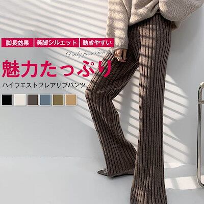 秋 フレアパンツ 秋冬 きれいめ カジュアル ワンマイルウェア ニットパンツ 大人 ニットフレアパンツ ボトムス リブニット パンツ イージーパンツ フレアパンツ おしゃれ ゆったり レディー | coolcoool