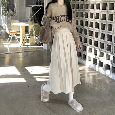 フレアスカート フレアパンツ 秋 春パステル シンプルプリーツ スカート ハイウェスト ロングスカート レディース服 ミディアムスカート Aライン 秋冬 ロング丈