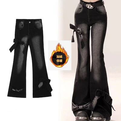 3日以内に出荷スタイルのパンツヴィンテージ蝶ネクタイフレアパンツジーンズ レディースパッド入り厚手ズボン