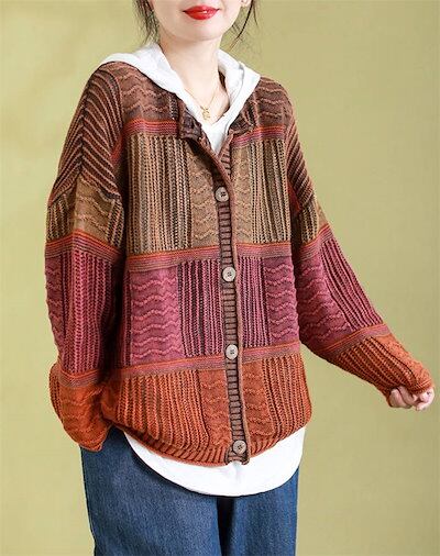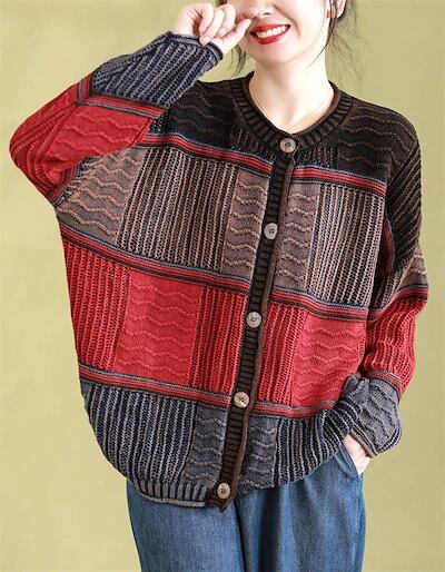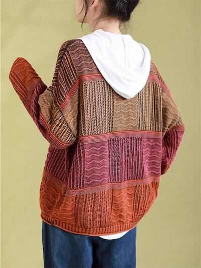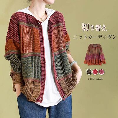 新作 ニットカーディガン 配色 春秋 長袖 トップス 前開き 長袖ニット レディースセーター クルーネック サマー ニットセーター セーター カーディガン レディースニット レディーストップス 編みニ | coolcoool