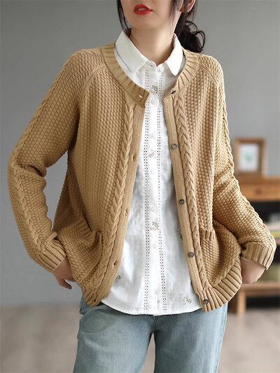 ニットカーディガン レディース 春秋 セーター トップス レディースニット トップス 長袖 前開きニット カーディガン ニット 編みニット 厚手 羽織 はおり ニットアウター アウター 無地 クルーネ | coolcoool