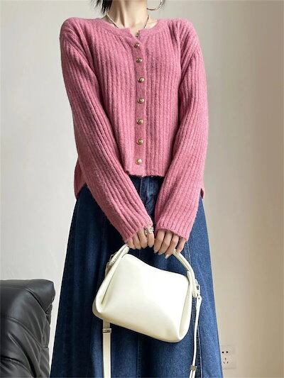 ニット カーディガン セーター カットソー レディース ニットカーディガン 長袖 ニットセーター トップス クルーネック 丸首 前開き 羽織 無地 アウター カジュアル おしゃれ きれいめ 着? | coolcoool