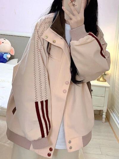 カーディガン レディースファッション 野球ウェア秋のゆったりBFピンクコート