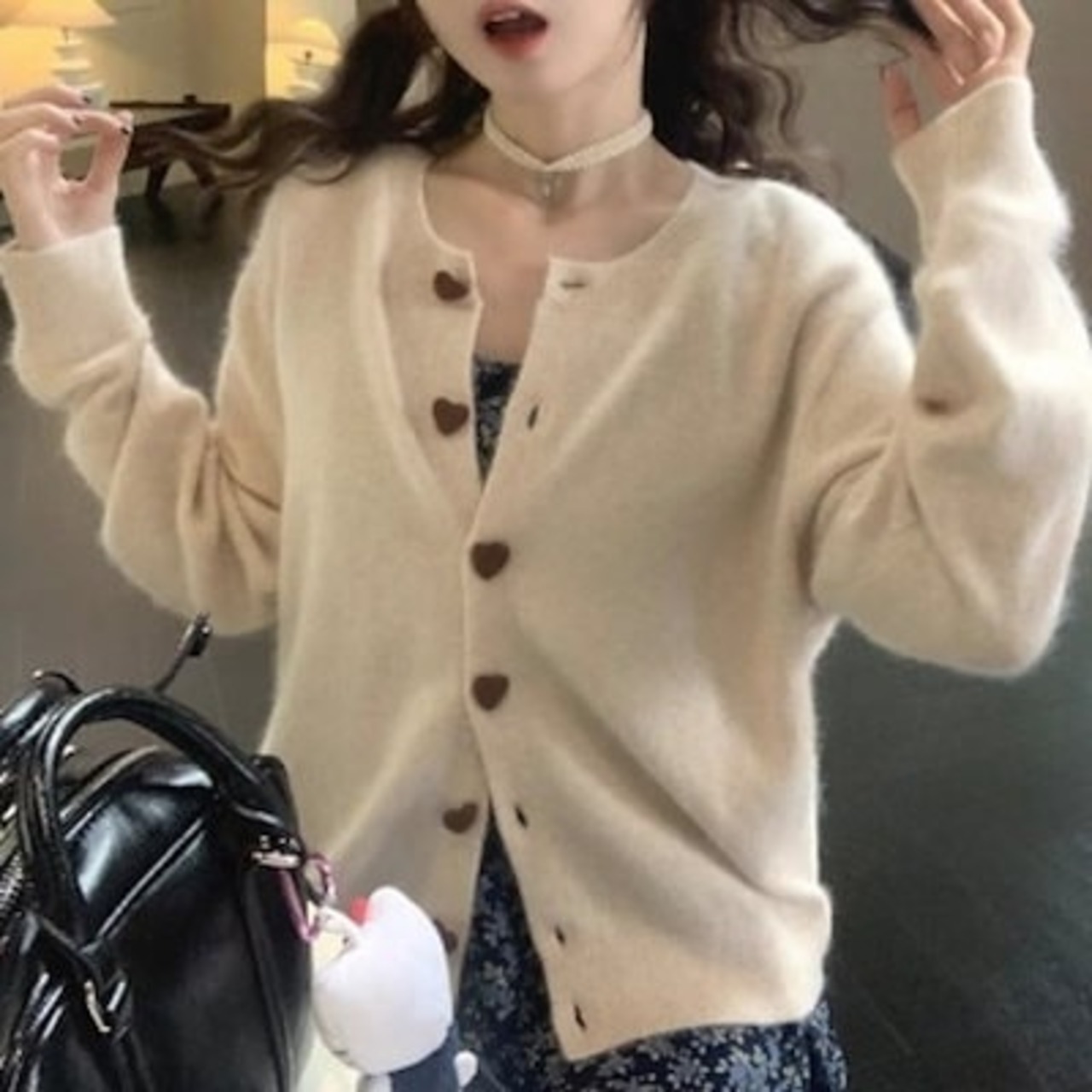2024 夏秋トップス カーディガン ニット セーター ラウンドネック ボタン 長袖 ゆったり 細見え 秋 おしゃれ かわいい ガーリー キュート 甘め 韓国ファッション レディース お出かけ | coolcoool