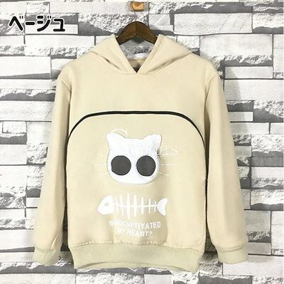 いつでも愛猫と一緒!ペットINパーカー お腹ポケット付き パーカーレディース 猫抱き 猫入れポケット お出掛け スウェット 男女兼用トレーナー ゆったり 散歩 旅行 体型カバー メンズ レディース 全 | coolcoool