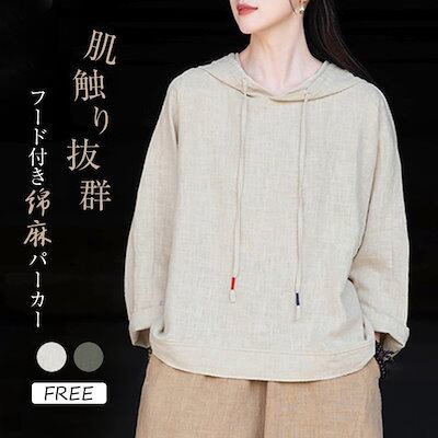 パーカー Tシャツ レディース ブラウス 春 夏 リネン フード付き ガーゼ 長袖パーカーTシャツ シャツブラウス 綿麻トップス 無地 大きいサイズ プルオーバー 着心地 オーバーサイズ 長袖 大人 | coolcoool
