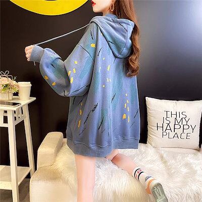 秋新作 パーカー ジャケット レディース 柄 長袖ジップアップ パーカー チュニック ゆったり 体型カバー カジュアル アウター