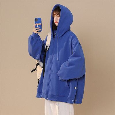 スウェット パーカー レディース 長袖 トップス 韓国風 カバー トレーナー 前開き ジップアップパーカー グラデーション 羽織り フード付き シンプル