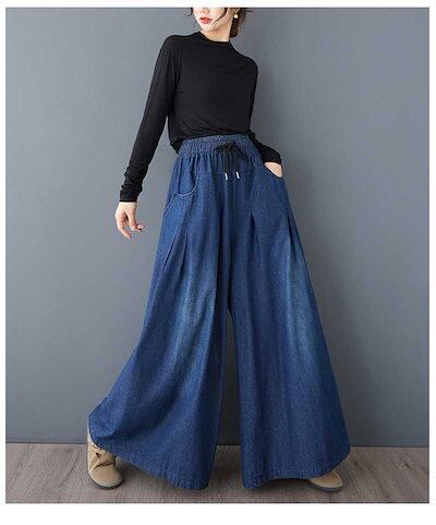 「ファットガール」 2025春 デニム ワイドパンツ ジーンズ フレア 大きいサイズ 体型カバー レディース ゴム ハイウエスト キュロットスカート メガ割