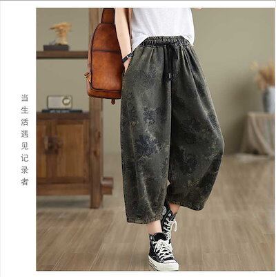 「ファットガール」 2024夏新品 レトロ 薄手 デニムパンツ 花柄 大きいサイズ 体型カバー レディース ジーンズ メガ割