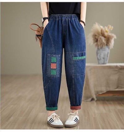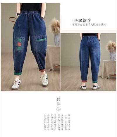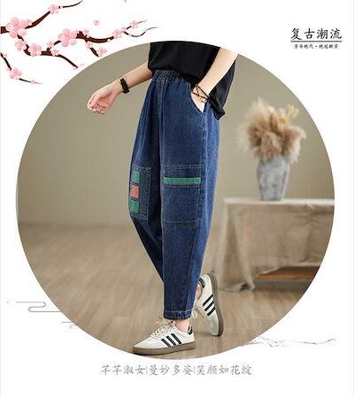 「ファットガール」 夏 刺繍 デーパードパンツ デニムパンツ ジーンズ ゴム 薄手 体型カバー 大きいサイズ ゆったり レディース