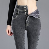 秋 冬 デニムパンツスキニーパンツ 3段ブレスト タイト 裏起毛 デニムパンツ ジーンズ レディース ファッション スリム 着痩せ 小柄 ハイウェスト 秋 冬 スキニーパンツ スラ ズボン 脚長効果! | coolcoool