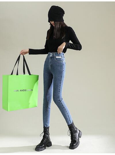 秋 冬 デニムパンツスキニーパンツ タイト 裏起毛 デニムパンツ ジーンズ レディース ファッション スリム 着痩せ 小柄 ハイウェスト 秋 冬 スキニーパンツ スラックスパンツ ズボン 韓 脚長効果 | coolcoool