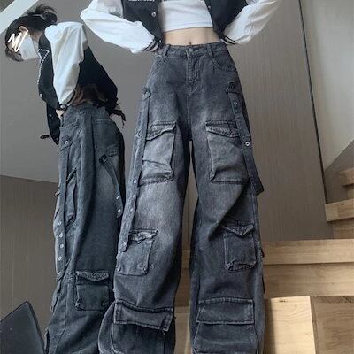 デニムボトムス 早いもの勝ち 2024秋冬 デニムパンツ ボトムス ハイウエスト ジーンズ 黑 ファッション系スタイル ゆるダボ ジーンズ シルエット加工ゆったり レディース カジュアル型 激?れ人気 | coolcoool