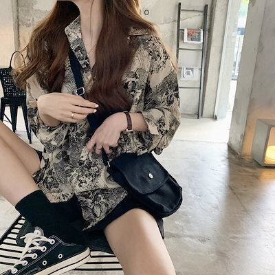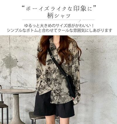 シャツ ブラウス レディース 長袖 春秋 トップス カットソー 総柄 柄シャツ 薄手 きれいめ ルーズ 光沢 ニュアンス 背中 タック マニッシュ チュニック ポリエステル100% 大きいサイズ オー | coolcoool