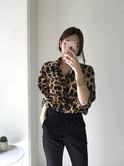 トップス レディース シャツ ブラウス ヒョウ 柄 長袖 襟付き 薄手 春 秋 冬 かっこいい 大人