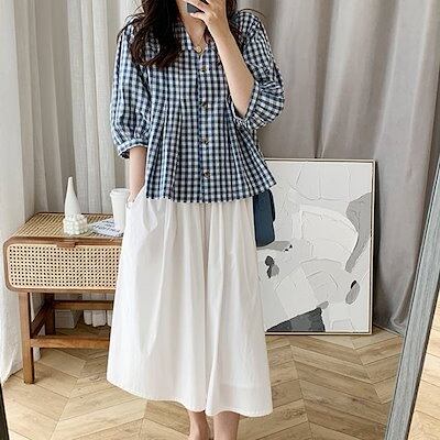 トップス レディース ブラウス シャツ 七分袖 Vネック ギンガムチェック 柄 大人 可愛い きれいめ